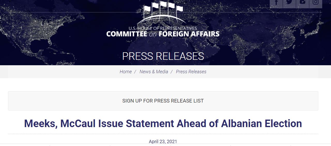 Ambasadorja e SHBA-së, Yuri Kim, ka shpërndarë thirrjen e Komitetit për Marrëdhëniet me Jashtë në SHBA në lidhje me zgjedhjet e 25 prillit.