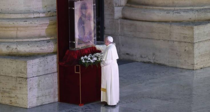 Çdo fjalë e tij është një referim i plotë i momentit unik që po kalon Italia dhe e gjithë bota. “Lakmitarë në fitim. E lamë veten të mbytemi nga gjëra e të nxitojmë nga hutimi. E tani që jemi në një det të hapur të përgjërohemi: ZGJOHU O ZOT!”. Papa Francesku ka mbyllur këtë lutje të jashtëzakonshme në Sheshin Shën Pietro, duke i besuar Shën Mërisë humanizmin e duke i kërkuar Zotit të mos braktisë njeriun në këtë furtunë.