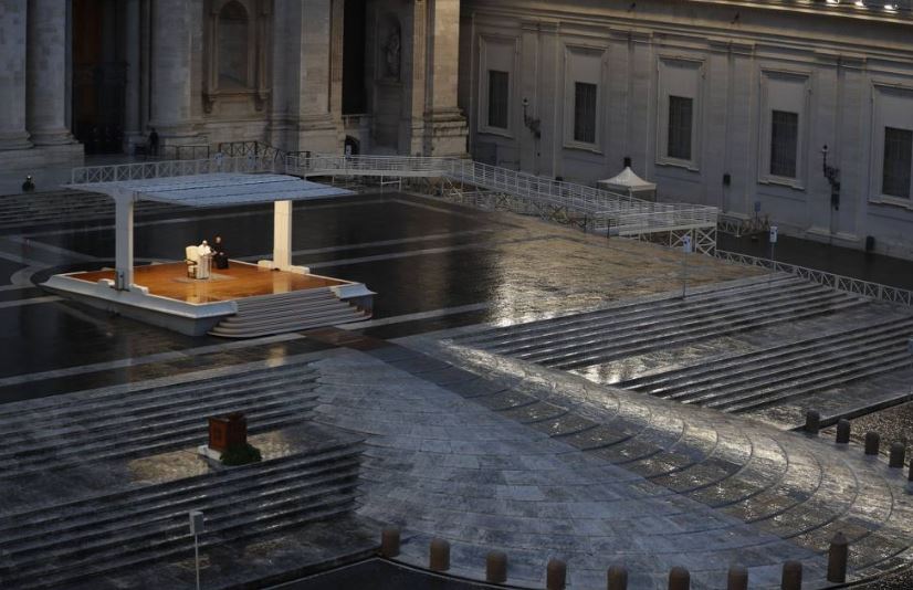 Si kurrë më parë në histori, sheshi Shën Pietro këtë të premte ishte bosh. Papa Francesku mbajti i vetëm një lutje të jashtëzakonshme për këtë moment që po kalon njerëzimi.
