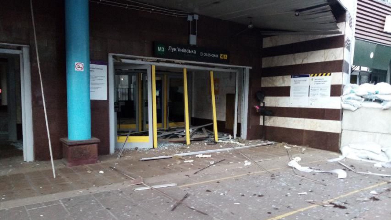 Me anë të një postimi në Twitter, rrjeti i metrosë së Kievit njoftoi se një nga shpërthimet këtë mëngjes dëmtoi pjesën e jashtme të stacionit Lukyanivska dhe zyrat.