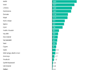 Në këtë trend rritës janë përfshirë edhe produktet e tjera të freskëta si limonët me 14.8%, duke u shitur me mbi 163 lekë për kg, kastravecët me 14.2% dhe domatet me 11.8%, duke e bërë segmentin e zarzavateve dhe frutave një nga kontribuuesit kryesorë në rritjen e kostos së jetesës gjatë kësaj periudhe.