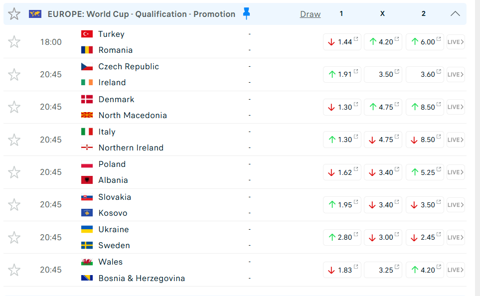 Ndeshjet e playoff që do zhvillohen me datë 26 mars japin përplasje interesante, ku natyrisht kryesorja për ne shqiptarët mbeten Poloni-Shqipëri dhe Sllovaki-Kosovë, ndeshje për Boterorin e këtij viti.