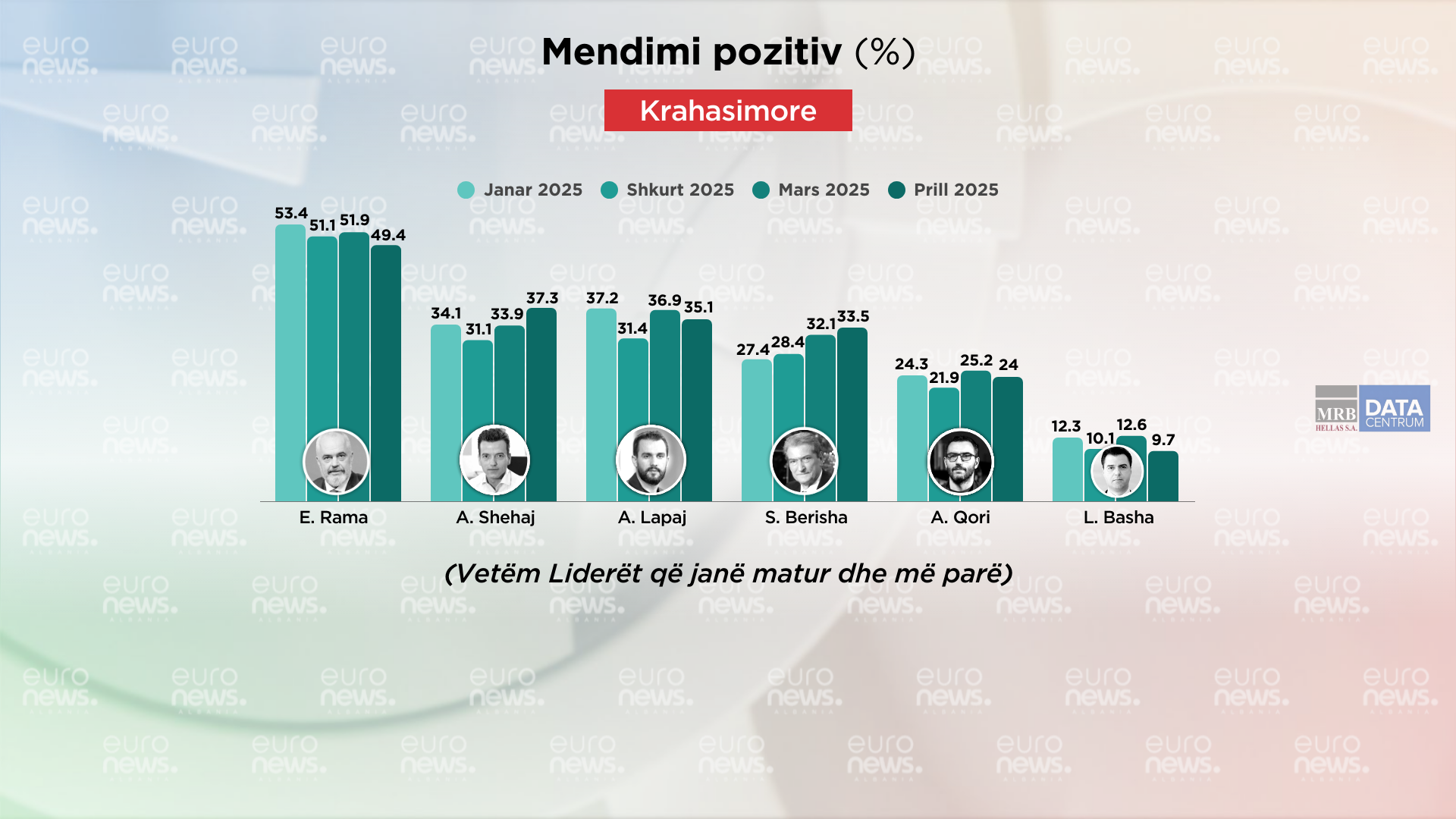 Adriatik Lapaj renditet i treti për mendimin pozitiv me 35.1%, 34.5% mendim negativ dhe 30.4% janë përgjigjur nuk e di.