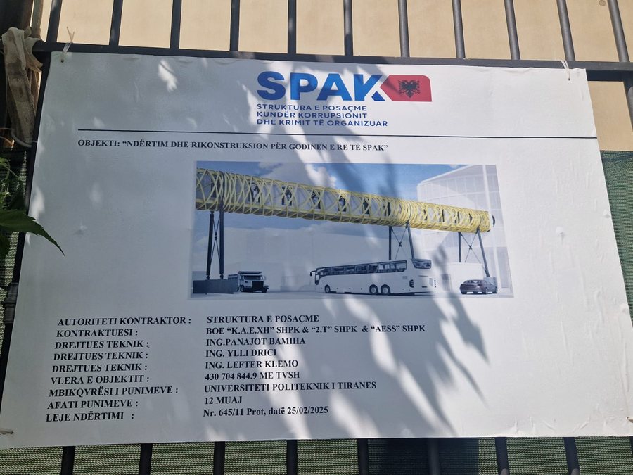 Struktura e Posaçme kundër Krimit dhe Korrupsionit ka nisur punimet për ndërtimin e një konstruksioni lidhës mes godinës së SPAK dhe asaj të BKH, që ndahen nga rruga “Jordan Misja”. Leja me objekt “Ndërtim dhe rikonstruksion për godinën e re të SPAK” është miratuar më 25 shkurt të këtij viti. Projekti kap vlerën e gati 430 milionë lekëve me TVSH.