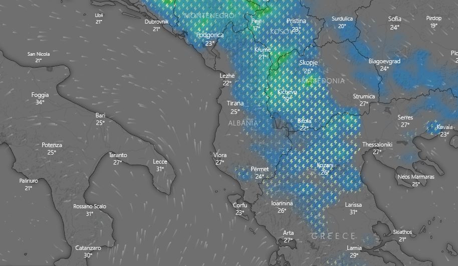 Gjatë orëve të mesditës vranësirat do të rriten duke sjellë reshje shiu, stuhi në disa zona por edhe breshër lokal. Dukuritë e tilla do të shfaqen kryesisht në zonat malore të vendit.