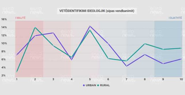 Pjesa më e madhe e shqiptarëve që jetojnë në zona rurale vetë identifikohen me të majtën ekstreme. Mes banorëve të zonave urbane, pjesa dërrmuese shprehen si të majtë liberalë.