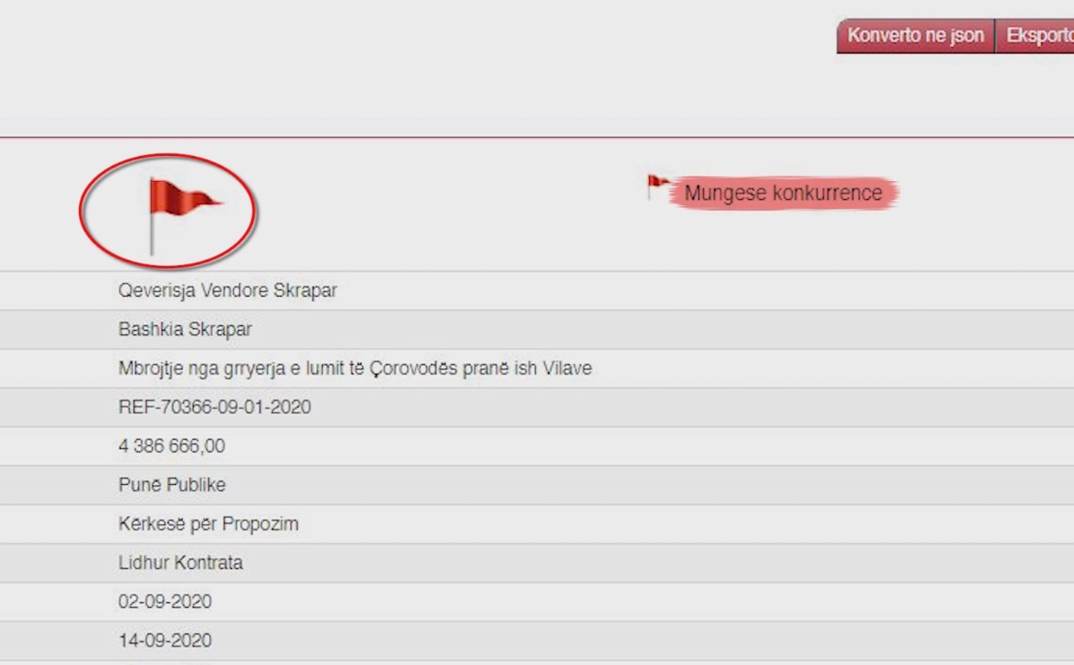 Këtë procedurë Open Data e ka shoqëruar me flamur të kuq me shënimin mungesë konkurrence.