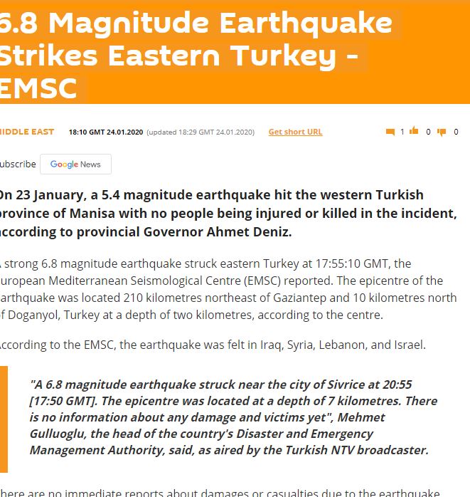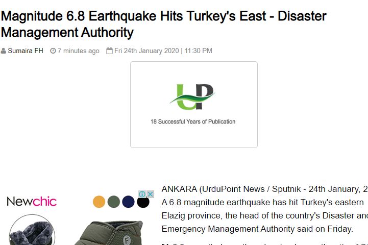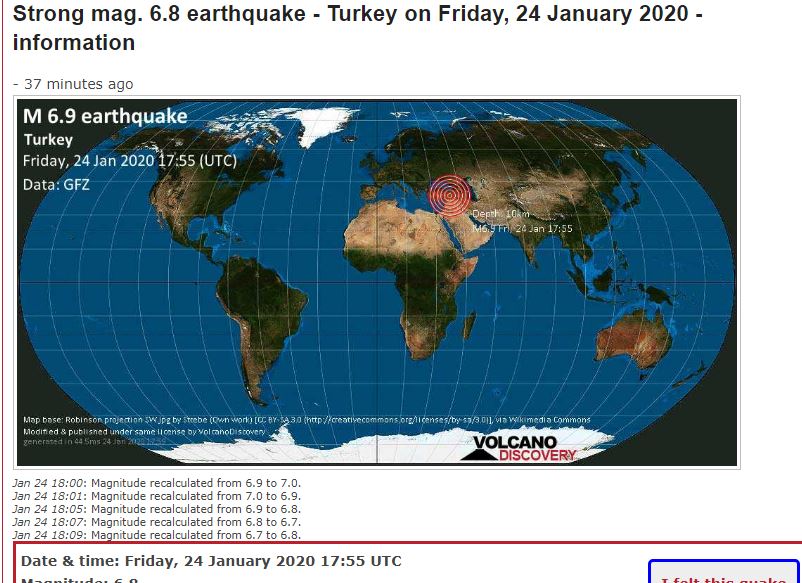 Agjencitë për tërmetet në Turqi raportojnë se një goditje e fuqishme me magnitudë 6.8 ballë të shkallës Righter ka tronditur lindjen e vendit.
