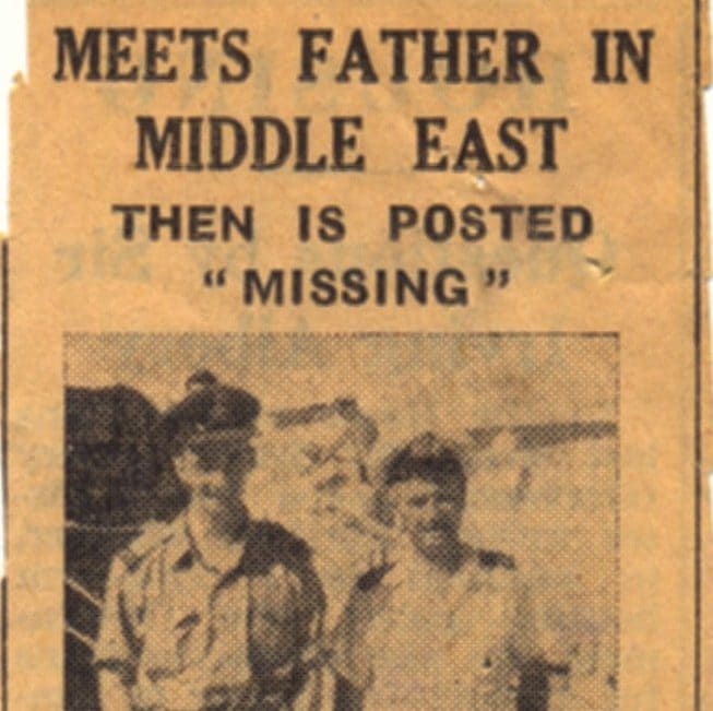 Prerje gazete rreth Leslie Norman Row duke u ribashkuar me babanë e tij në Egjipt para se të humbiste Kredia : Gravesend Grammar/Pen News
