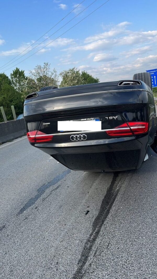 Një automjet tip “Audi A8 L” është kthyer përmbys. Mësohet se për fat të mirë nuk ka pasur të lënduar.