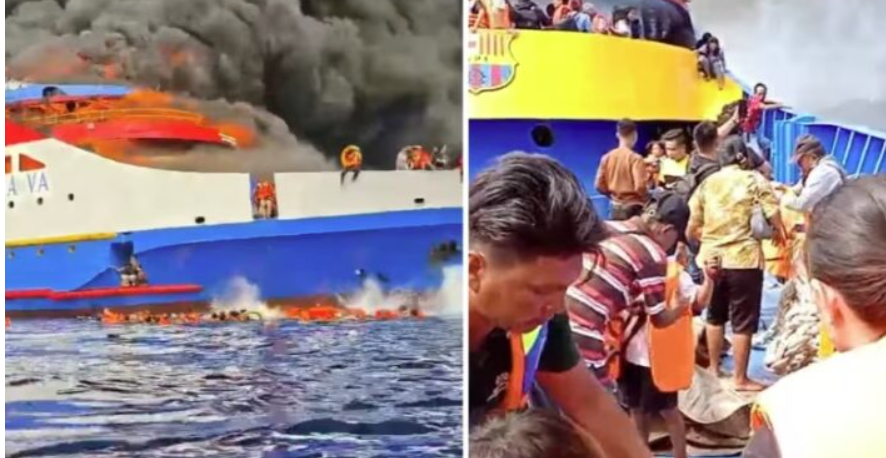 Një traget me 280 persona shpërtheu në flakë pranë brigjeve të Indonezisë, duke i detyruar pasagjerët e tmerruar të hidheshin në det të veshur me jelekë shpëtimi. Deri tani raportohet për 5 viktima.