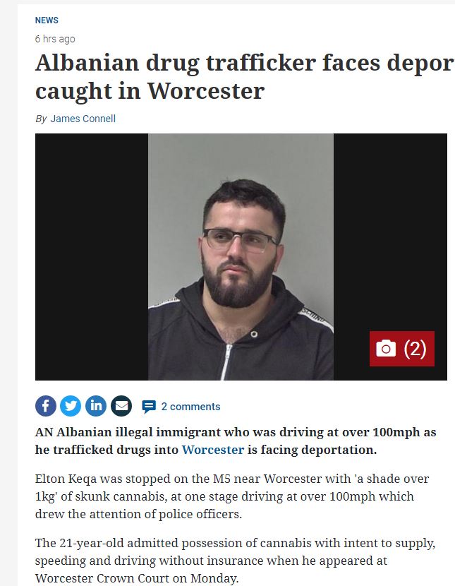 Një 21-vjeçar shqiptar do të dëbohet nga Anglia, pasi u arrestua nga policia duke transportuar drogë. I riu u ndalua në zonën e Worcester, pasi ishte duke ecur me shpejtësi të madhe në rrugë. Pasi u ndalua, të riut, i identifikuar si Elton Keqa, i është gjetur dhe 1 kilogramë drogë në mjetin që ai drejtonte.