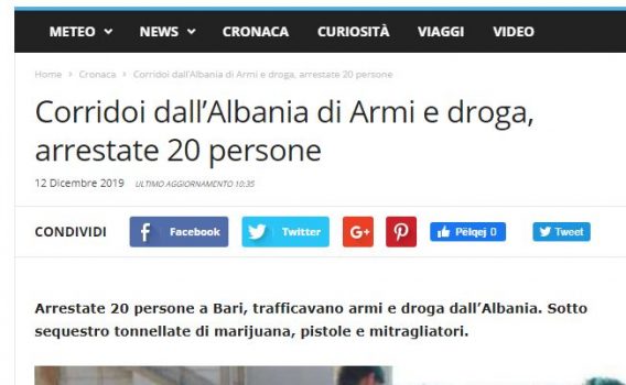 Autoritetet italiane kanë arrestuar 20 persona mëngjesin e kësaj të enjte. Mediat fqinje raportojnë se të arrestuarit dyshohen të jenë të përfshirë në trafikun e armëve dhe drogës nga Shqipëria në drejtim të Italisë.