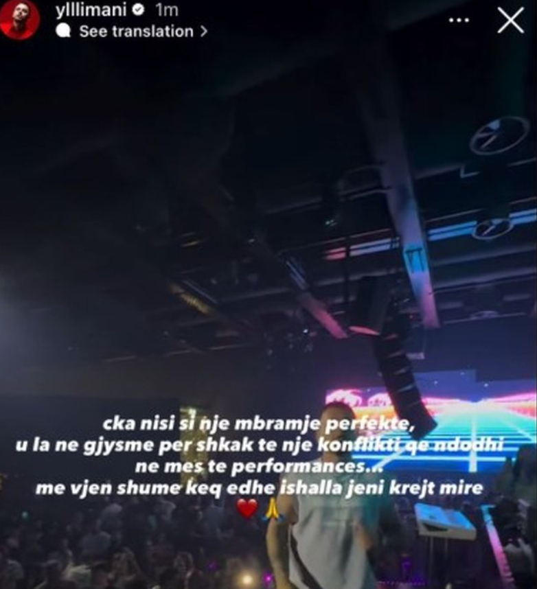 “Çka nisi si një mbramje perfekte, u la në gjysmë për shkak të një konflikti që ndodhi. Më vjen shumë keq edhe ishalla jeni krejt mirë.”