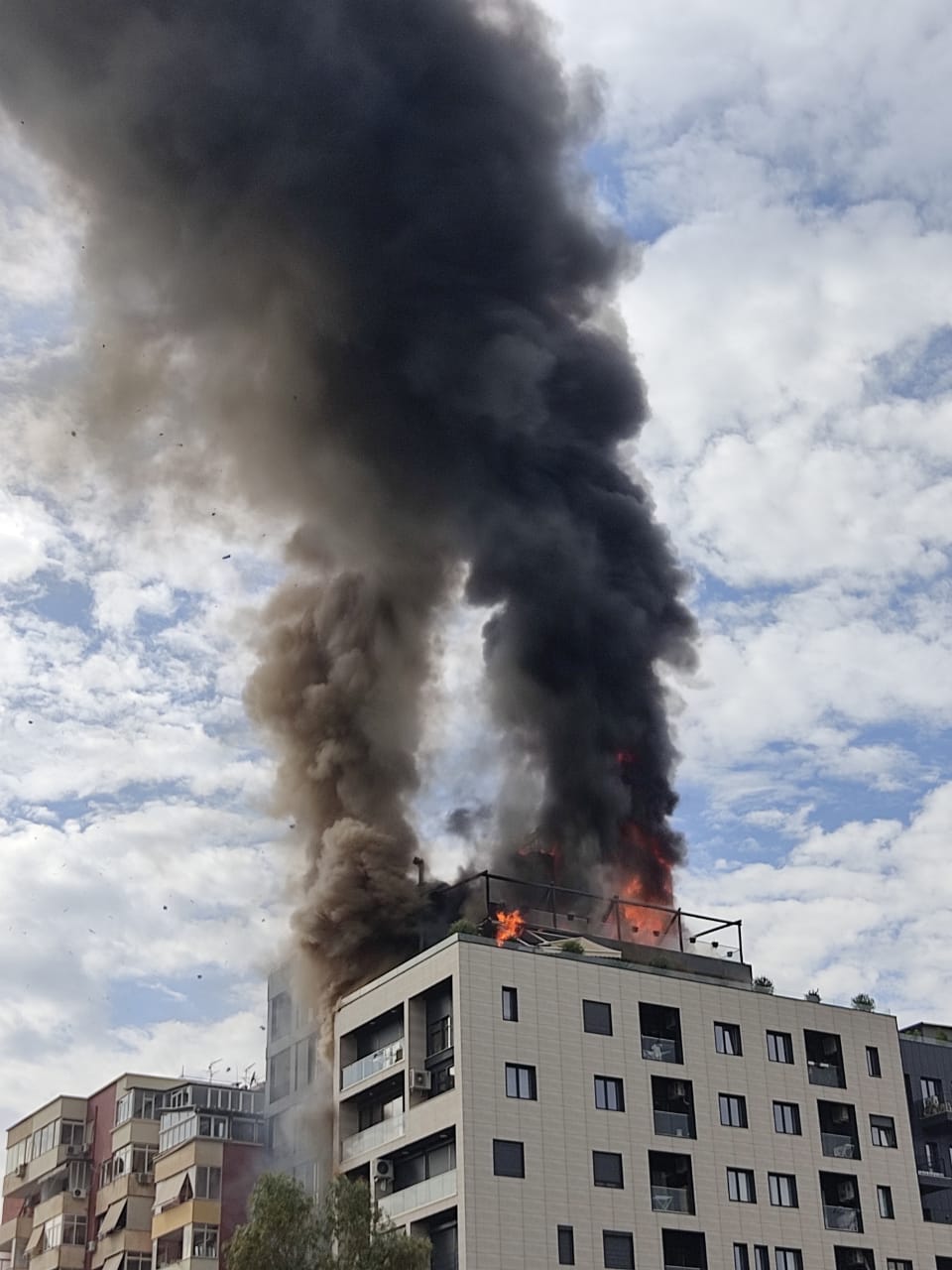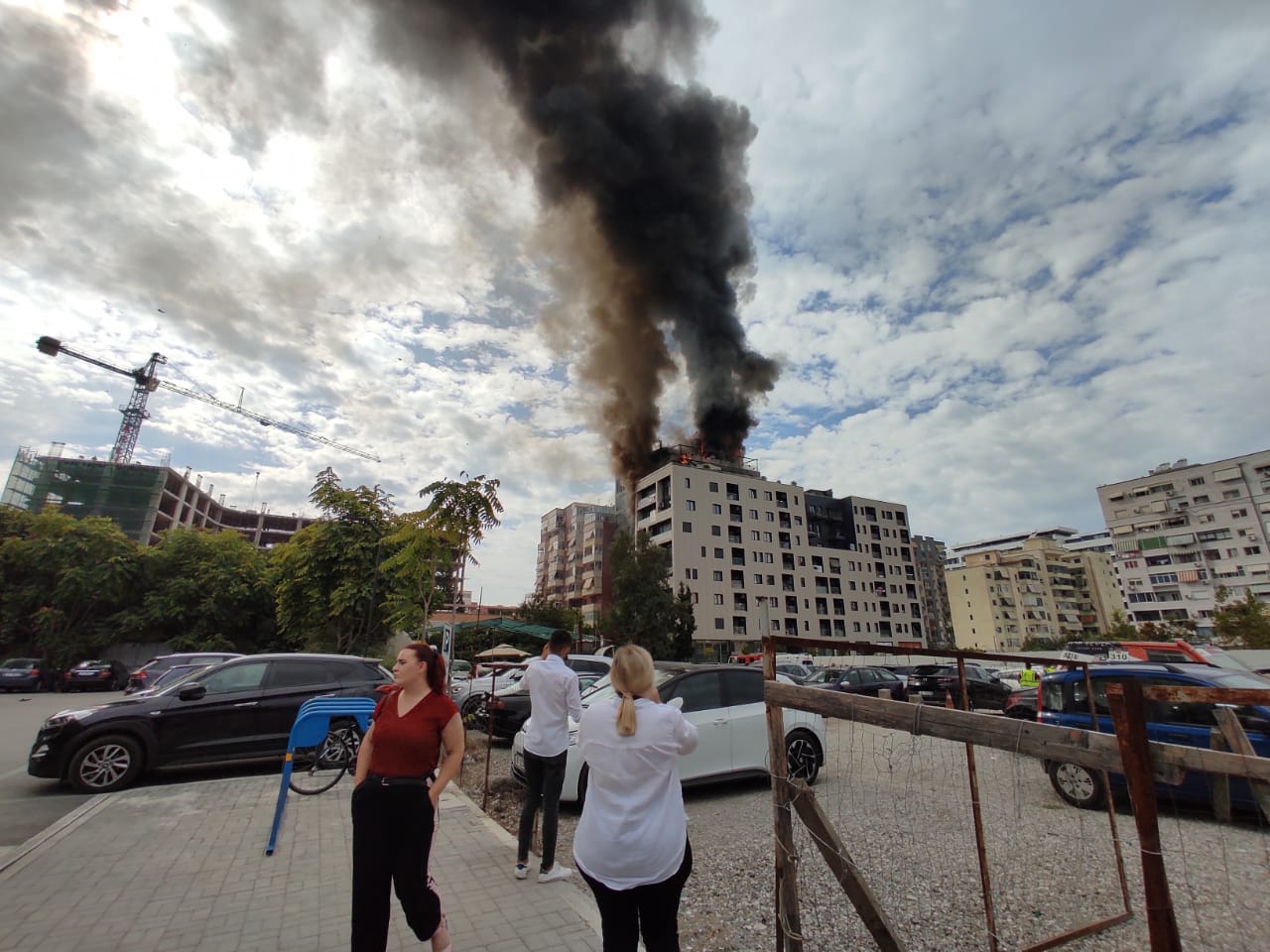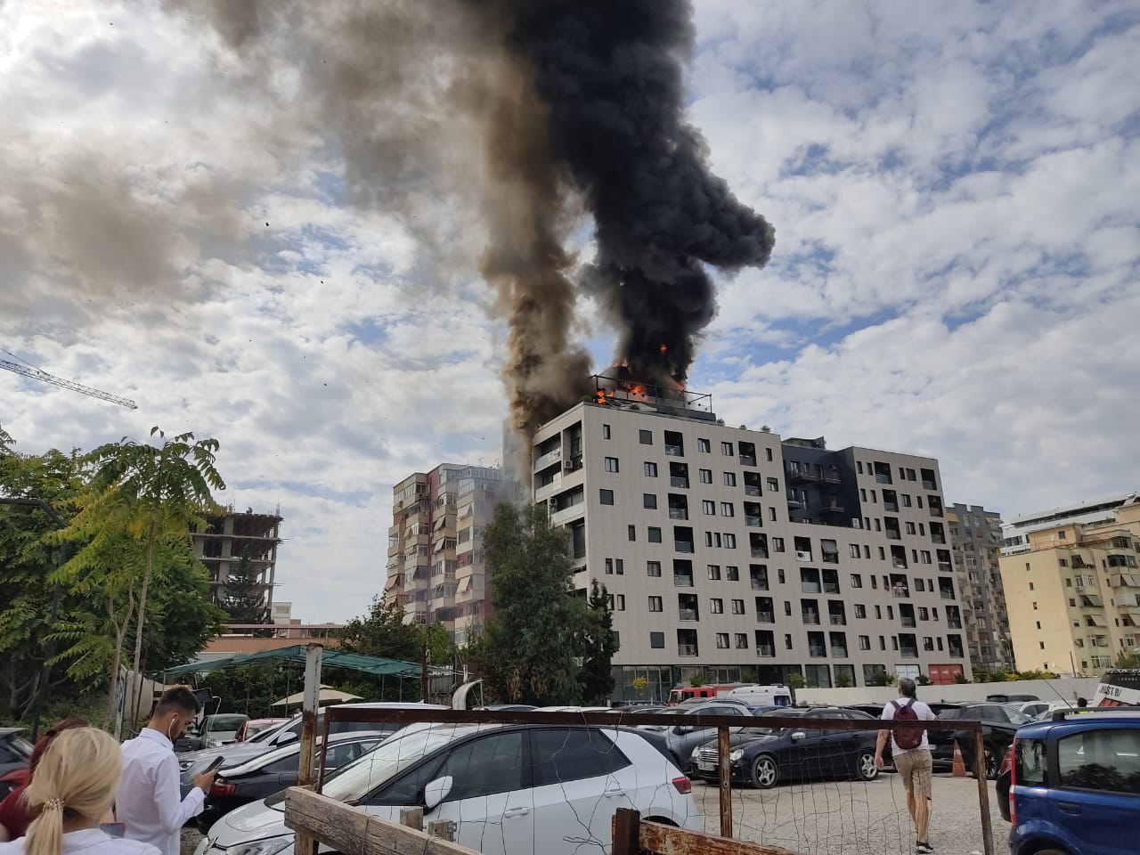 Mësohet se zjarri ka rënë në tarracën e pallatit dhe flakët janë përhapur edhe në ndërtesën ngjitur.