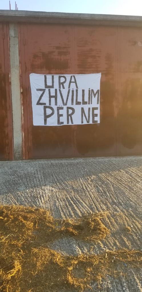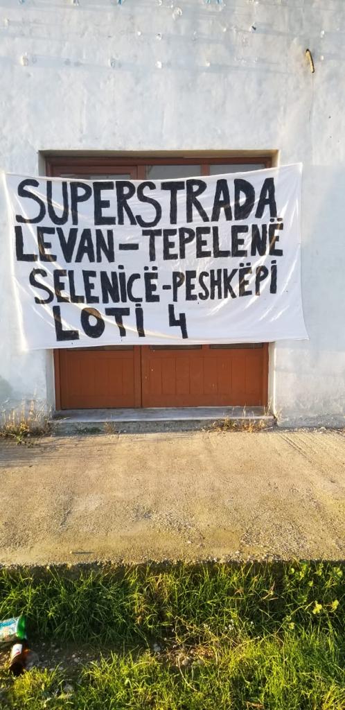 Duke vendosur pankarta me mbishkrime për ndërtimin e lotit të 4 të rrugës së Lumit të Vlorës.