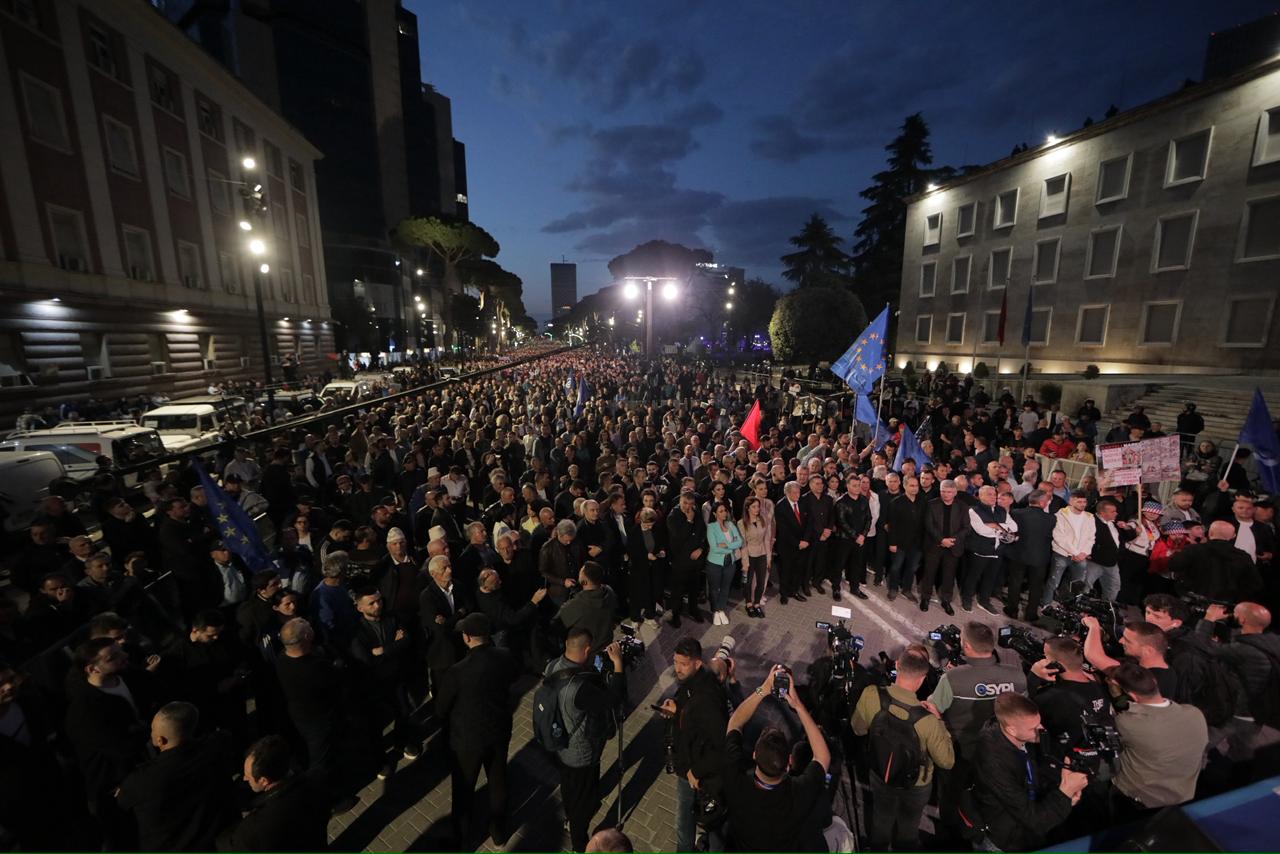 FOTO/ Pas tubimeve me shëtitje, rikthehet podiumi në protestën e PD tek Kryeministria