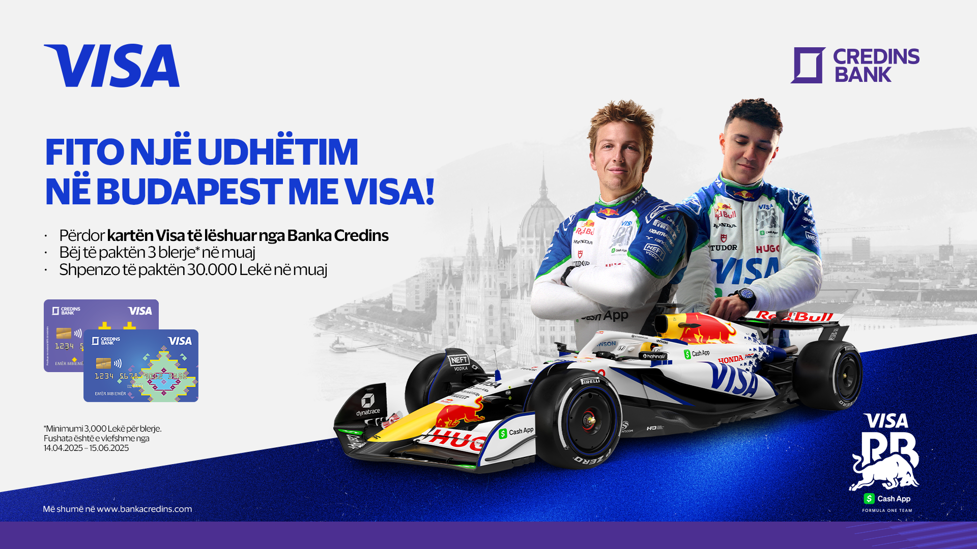 Si një iniciativë ambicioze, kjo fushatë synon të shpërblejë klientët e kartës Visa nga Credins bank me një eksperiment të jashtëzakonshëm. Për herë të parë në Shqipëri, një fitues do të përzgjidhet përmes shortit dhe do të udhëtojë çift drejt Budapestit për të ndjekur garën e Formula 1 live. Ky udhëtim përfshin benefite ekskluzive si: