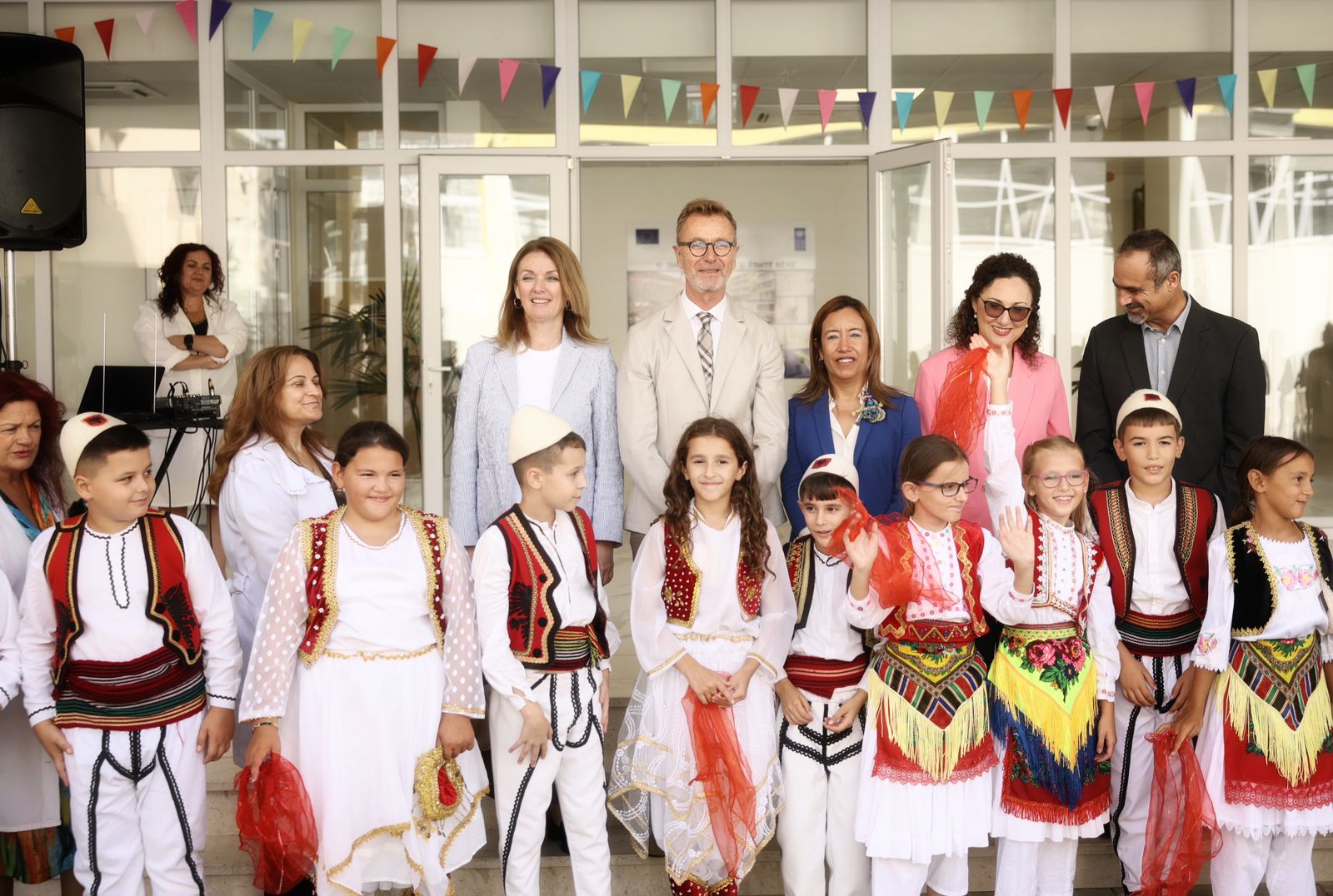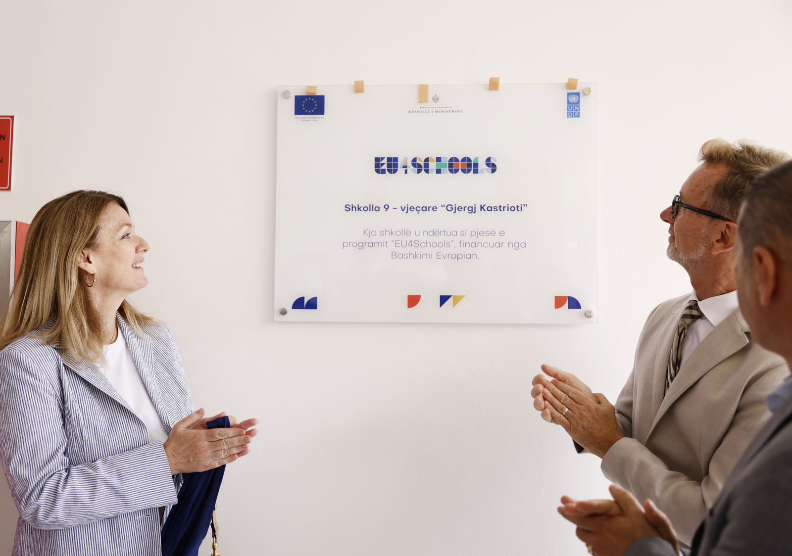 Një moment kryesor i vizitës ishte inaugurimi i shkollës 9-vjeçare “Gjergj Kastrioti”, e cila është rindërtuar falë programit EU4Schools/BE për Shkollat. Ky institucion arsimor modern tashmë u shërben 631 nxënësve dhe 38 mësuesve. Objektet e reja të shkollës përfshijnë laboratorë, bibliotekë, sallë multifunksionale, zyrë për mjek dhe psikolog, si dhe palestër. Programi EU4Schools është një projekt prej 75 milionë eurosh, i financuar nga Bashkimi Evropian dhe i zbatuar nga UNDP, i cili ka në fokus rindërtimin ose riparimin e 63 institucioneve arsimore në 11 bashki të prekura nga tërmeti.
