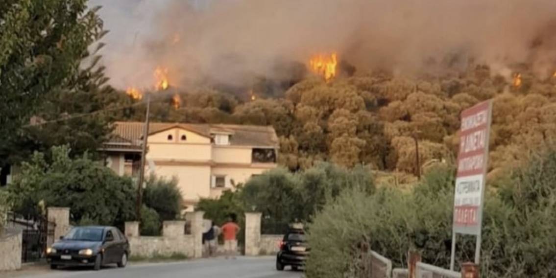 Një zjarr i madh ka përfshirë ishullin e Zakynthos në Greqi, ku për pasojë flakët janë përhapur në një zonë të banuar.