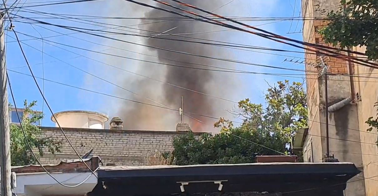 Zjarr pranë Pazarit të Ri në Tiranë, tym i dendur ngrihet nga një banesë