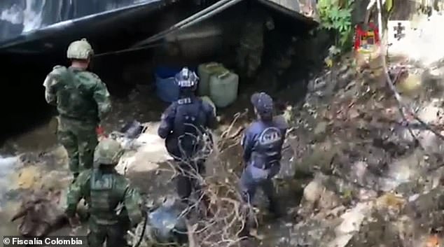 Në një video të publikuar nga zyra e Prokurorisë së Përgjithshme të Kolumbisë tregohet momenti kur ushtarët zbresin me helikopter dhe bastisin një prej dy laboratorëve të ngritur nga Ushtria Kombëtare Çlirimtare në një pyll pranë brigjeve të Paqësorit në rajonin Narinjo (Nariño).