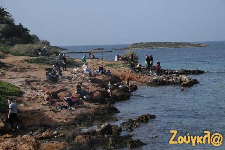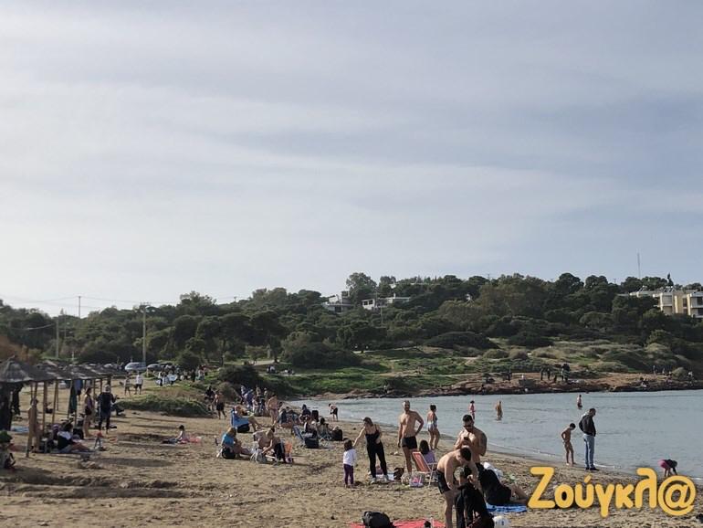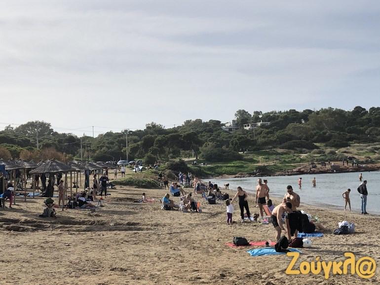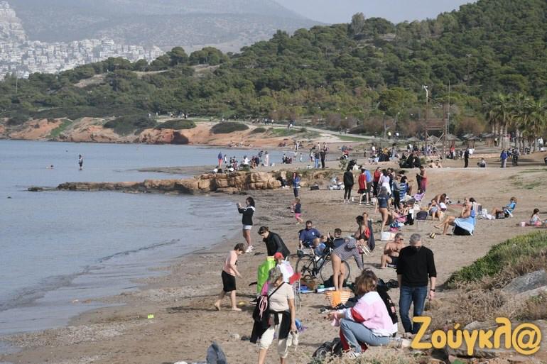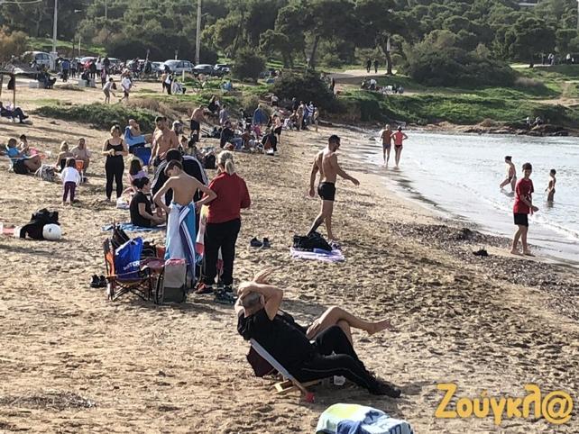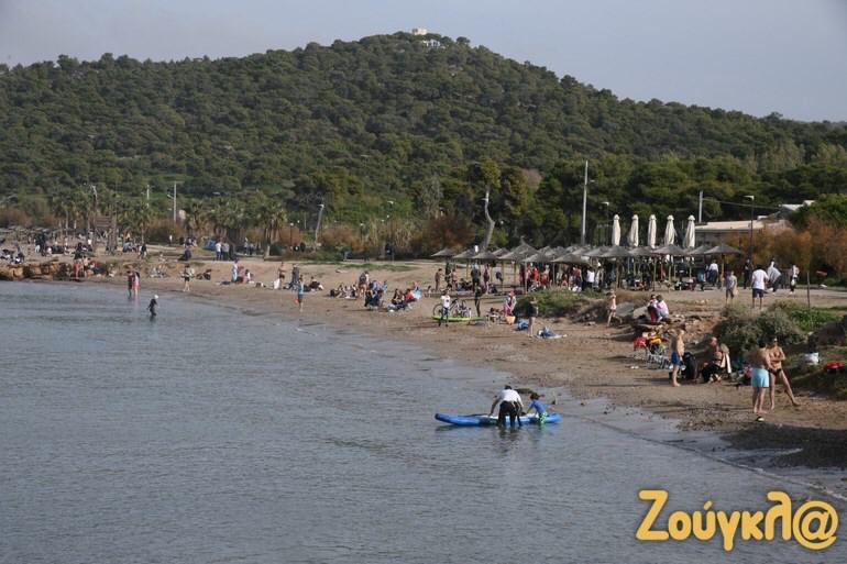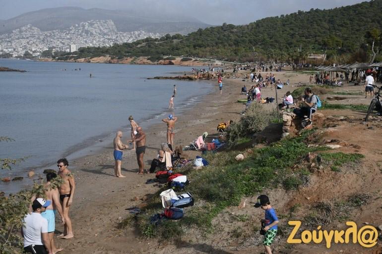 Shumë njerëz kanë nxituar në plazhet e Atikës që nga mëngjesi, për një shëtitje por edhe për të notuar për shkak të motit me diell dhe temperaturave të larta që janë regjistruar.