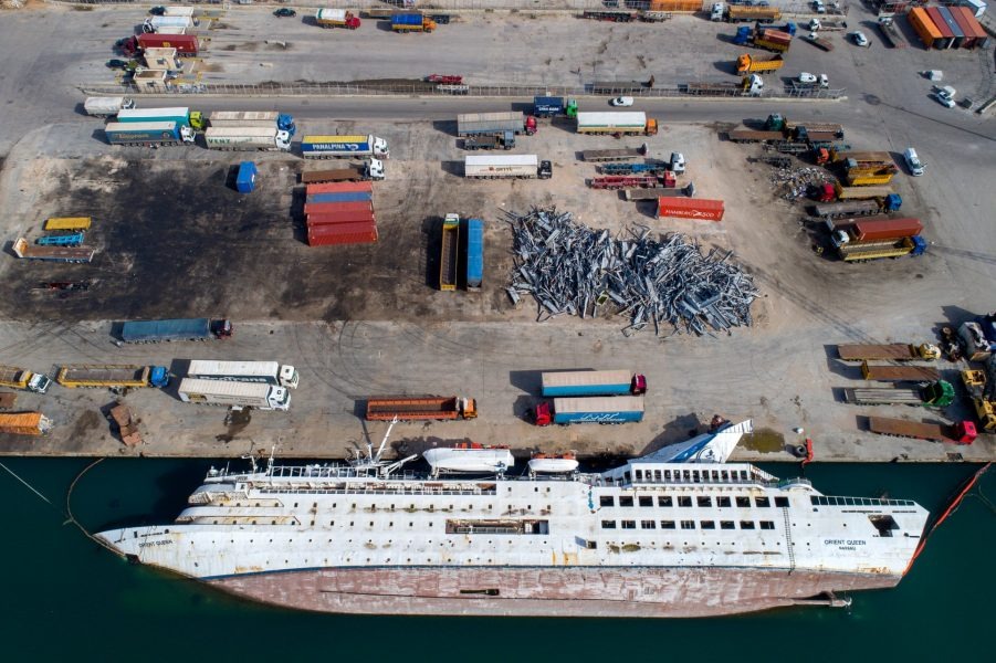 Në imazhet e publikua shihen ende pasojat e shpërthimit. Vendi është i mbuluar nga inerte të shumta, mbetje anijesh dhe shkatërrime të tjera.
