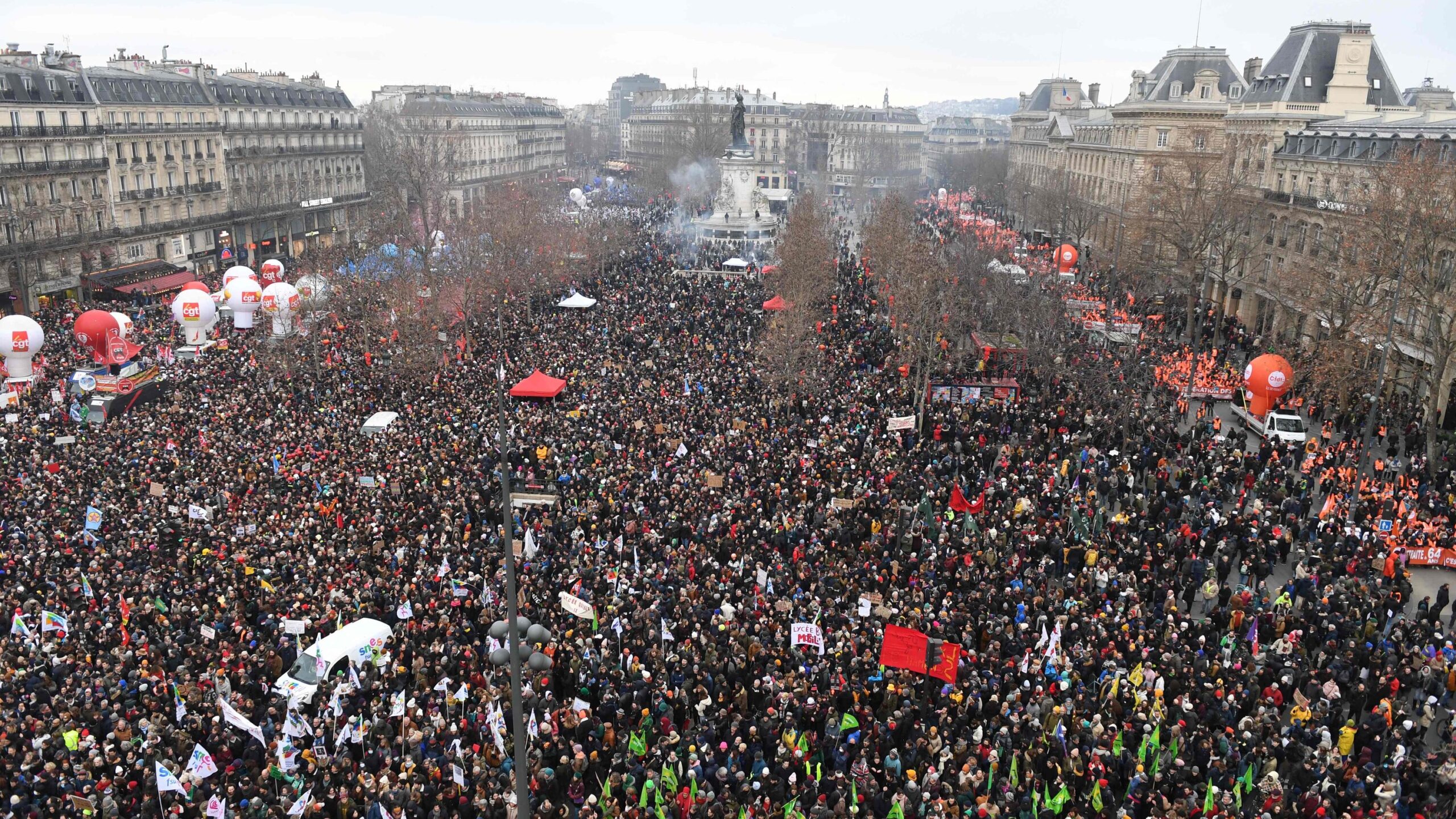 Sindikatat thonë se rreth dy milionë njerëz kanë dalë në rrugë. Rreth 30% e stafit pedagogjik të shkollave franceze i janë bashkuar grevës kundër reformës së pensioneve, por sindikatat në atë që po përvijohet si beteja e zakonshme e shifrave me qeverinë – po flasin për 60%.