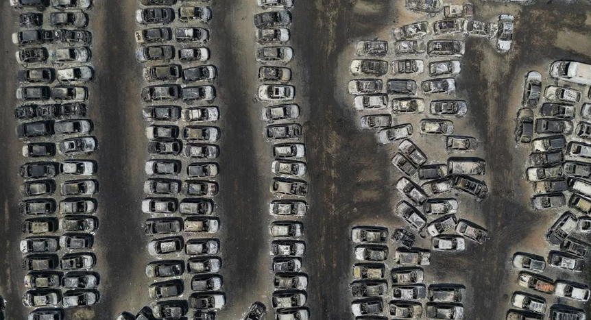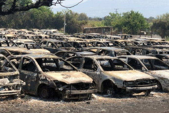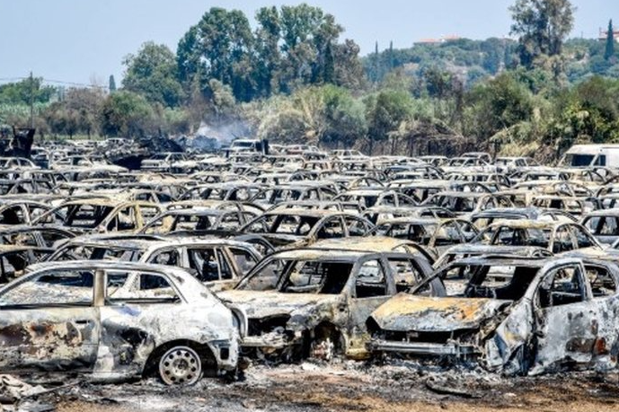 FOTO/ Situatë apokaliptike nga zjarret, shkrumbohen qindra makina