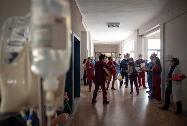 Një gjest emocionues i bluzave të bardha po bën xhiron e rrjetit. Mjekët dhe infermierët e spitalit “George Papanikolaou” në Selanik kanë surprizuar pacientët e shtruar me Covid-19.