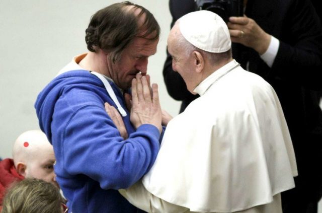 Papa Françesku ka realizuar një vizitë në sallën e “Paul VI”, ku edhe është surprizuar nga gjesti i një burri 40-vjeçar. I veshur thjeshtë me një bluzë blu, 40-vjeçari përveçse e puthi në ballë ka arritur ta përqafojë Papën. Mediat e huaja shkruajnë se Papa gjatë fjalës së tij i kushtoi rëndësi të veçantë audiencës së besimtarëve ku edhe iu drejtua me mesazhe për të qëndruar larg dhunës. Personi i cili arriti ti jepte në puthje të ngrohtë Papës ishte pjesë e eventit të aktorit dhe piktorit francez 89-vjeçar, Michel Lonsadale, një katolik i angazhuar për një kohë të gjatë në “Rinovimin Karizmatik”, një lëvizje që ka dhjetëra miliona besnikë në të gjithë botën dhe që Papa Françesku takohet çdo vit.