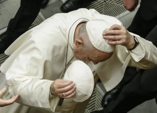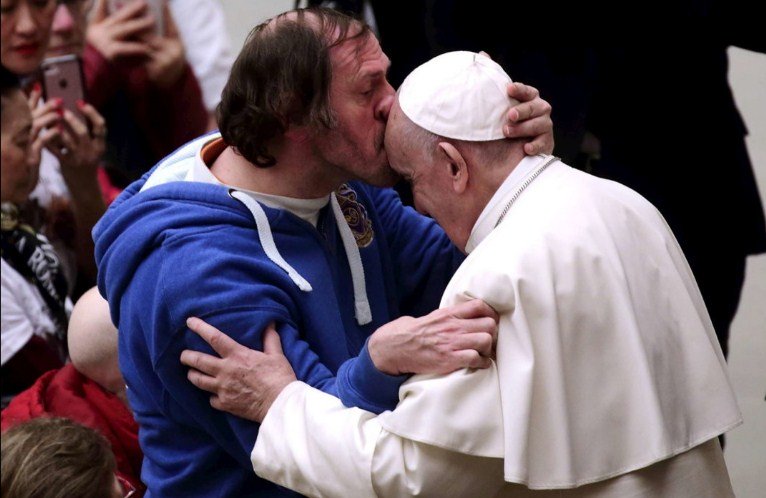 Hit në rrjet, një besimtar puth në ballë Papën (FOTO)