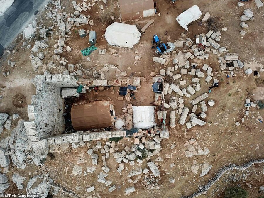 Familja e tij ngriti një strehë në rrënojat e tempullit romak. Ai, së bashku me bashkëshorten dhe tre fëmijët, janë mes miliona sirianëve që kanë braktisur shtëpitë e tyre dimrin e kaluar pas sulmit të mbështetur nga Rusia në bastionin e fundit të rebelëve në Siri, Idlib.