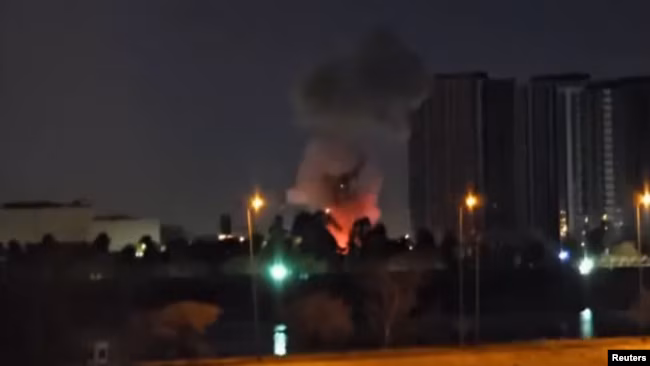 Fotografi e shkëputur nga një video që shfaq momentin e një sulmi me dronë ndaj ndërtesës së Ambasadës amerikane në Bagdad.