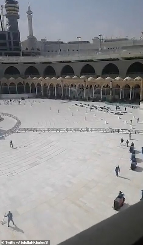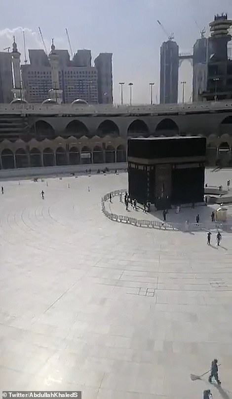 Fotografitë dhe videot tregojnë hapësirën përreth Kaabas, vendit të shenjtë për myslimanët në mbarë botën, që shihet pa as edhe një njeri përveç punonjësve që po pastrojnë këtë zonë.