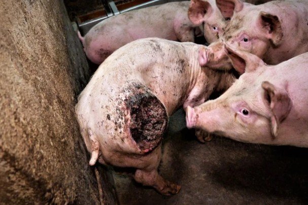 Pamje të frikshme janë publikuar nga aktivistët e “Meat The Victims” ku në një fermë derrat e uritur kishin filluar që të hanin njëri tjetrin të gjallë. Hetimi i fshehtë u drejtua nga e Tuesday Goti, një aktiviste me kohë të plotë që e etiketoi përvojën si “absolutisht shqetësuese”. Ajo i tha Metro-s: “Një prej derrave kishte një vrimë në të dy anët e saj dhe ishte e kanibalizuar. Ata po e hanin teksa ishte gjallë dhe nuk kishte as forcë të bërtas.