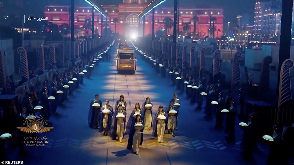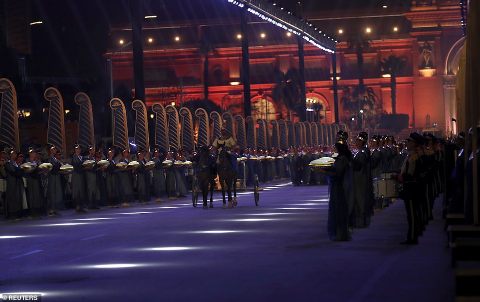 21 të shtëna arme nisën ceremoninë, që u shoqërua gjatë gjithë kohës me drita dhe muzikë. Shumica e mumjeve i përkisnin Mbretërisë së Re, që udhëhoqi Egjiptin nga viti 1539 deri në vitin 1075 përpara Krishtit.