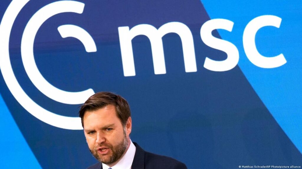 Zëvendëspresidenti JD Vance e kritikoi ashpër Evropën në Konferencën e Sigurisë në Mynih .Fotografi: Matthias Schrader/AP Photo/picture alliance