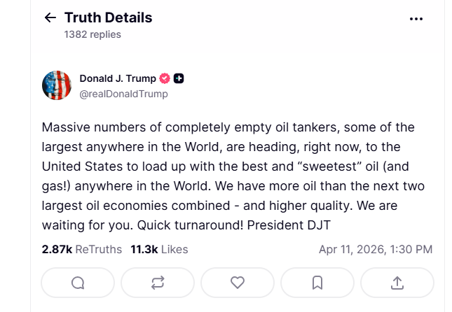 “Një numër i madh cisternash nafte plotësisht të zbrazëta, disa nga më të mëdhatë kudo në botë, po shkojnë, pikërisht tani, drejt Shteteve të Bashkuara për t’u ngarkuar me naftën (dhe gazin!) më të mirë dhe më “të ëmbël” kudo në botë. Ne kemi më shumë naftë se dy ekonomitë e tjera më të mëdha të naftës së bashku – dhe cilësi më të lartë. Ju presim.”, shkruan Trump në Truth Social.