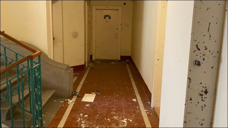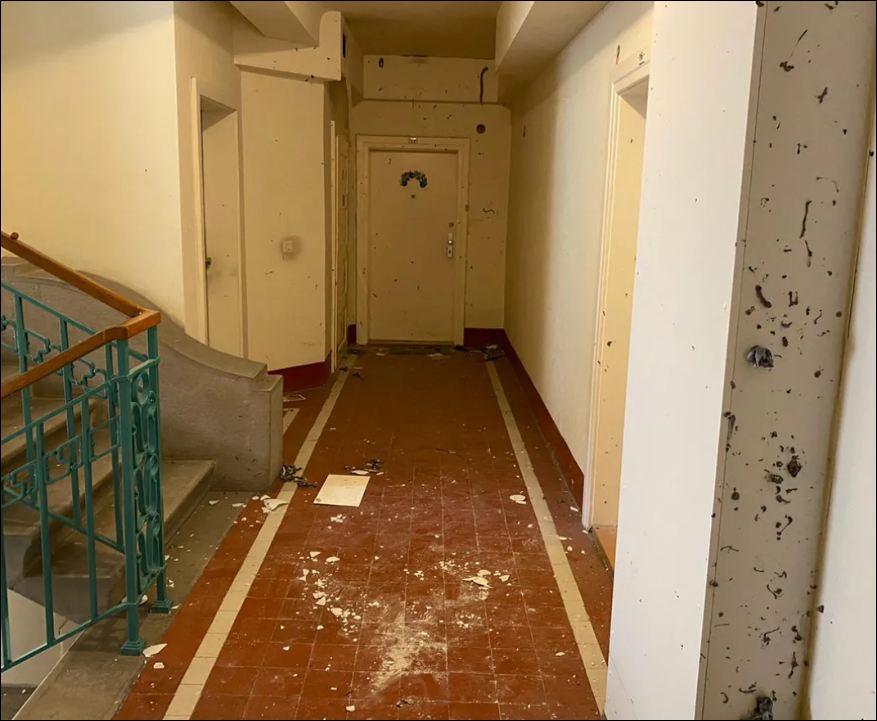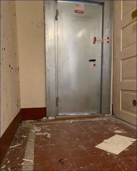 Tani ka ende rrënoja të derës së thyer të apartamentit në korridor. Lokalet e terroristit ndërkohë janë mbyllur përsëri nga ekzekutivi me një derë të përkohshme çeliku.