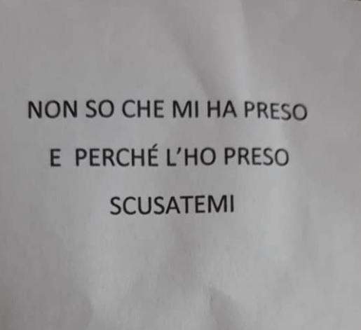 Në pako ishte shkruar edhe një mesazh i shkurtër, “Nuk e di se ç’më gjeti, nuk di pse e mora. Ju kërkoj ndjesë”.