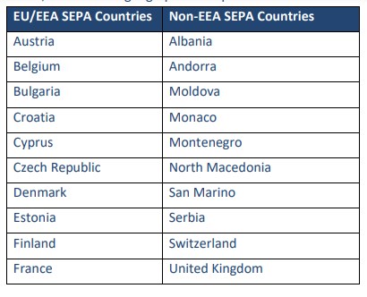Për të kryer pagesa nëpërmjet SEPA, duhet të plotësohen dy kushte kryesore: Dërguesi dhe pranuesi i transferimit duhet të jenë nga vendet anëtare të SEPA dhe transaksioni duhet të kryhet me monedhën euro.