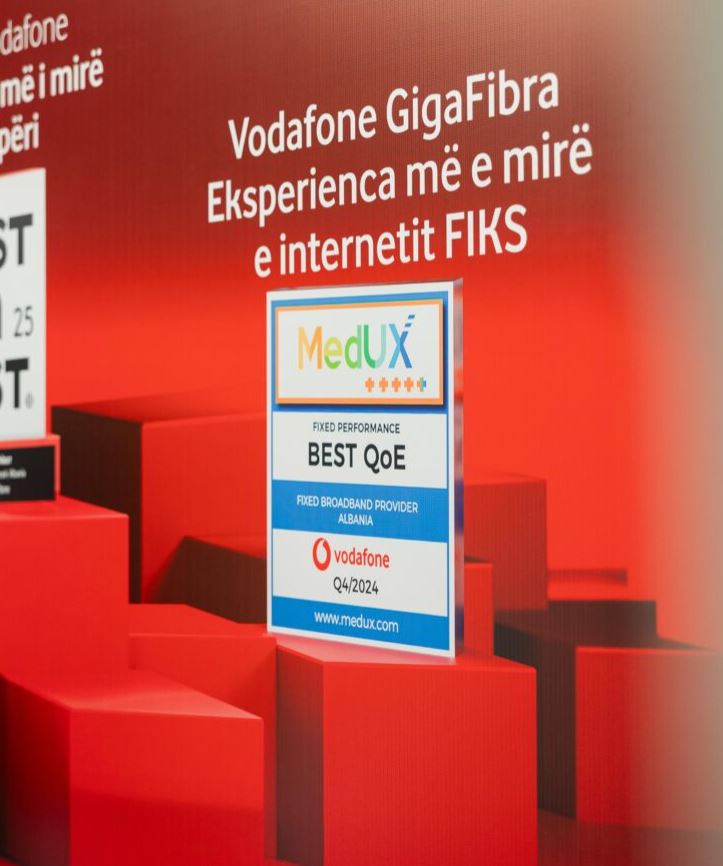 Përveç certifikatës së UMLAUT, Vodafone Albania është vlerësuar edhe nga MedUX, kompania prestigjioze ndërkombëtare e specializuar në analizën e përvojës së përdoruesve të rrjeteve celulare. Matjet e kryera gjatë muajve maj-qershor 2025 renditën Vodafone si rrjetin 5G me cilësinë më të mirë të eksperiencës në Shqipëri në kategoritë: shpejtësi, streaming dhe OTT.