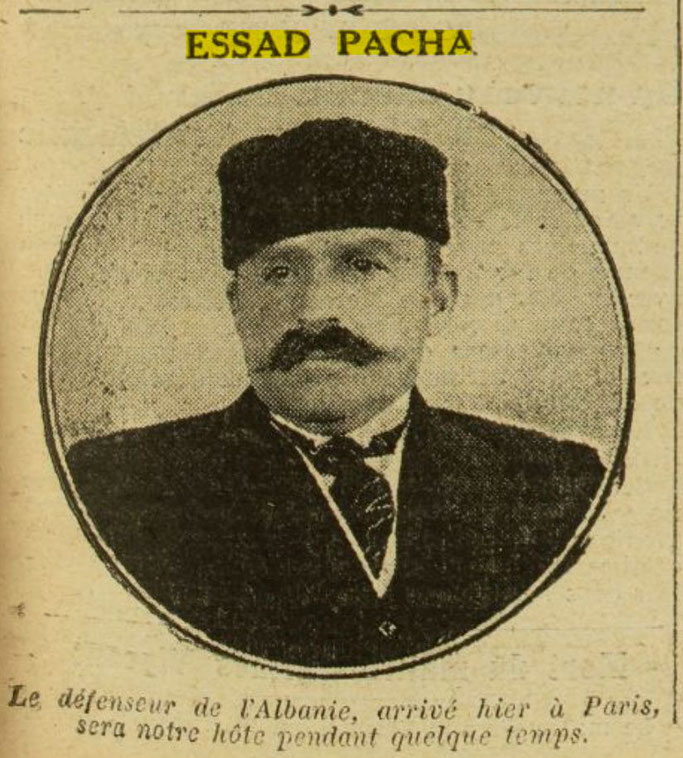 Esat Pasha, kreu i qeverisë shqiptare që i rezistoi sulmit austriak në rajonin e Durrësit, dhe që aktualisht ndodhet në Francë, po niset sot në mëngjes për një vizitë në front. Ai shoqërohet nga z. de Fontenay, ministër i Francës në Shqipëri, dhe nga z. Krajewski, delegat i Francës në komisionin e kontrollit për Shqipërinë. Ai na priti dje dhe na tha :