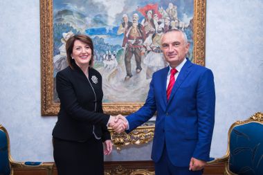 6 Prill 2021 22:53 Presidenti Nishani i uron vëllazërisht mirëseardhjen Presidentes së Kosovës, Atifete...