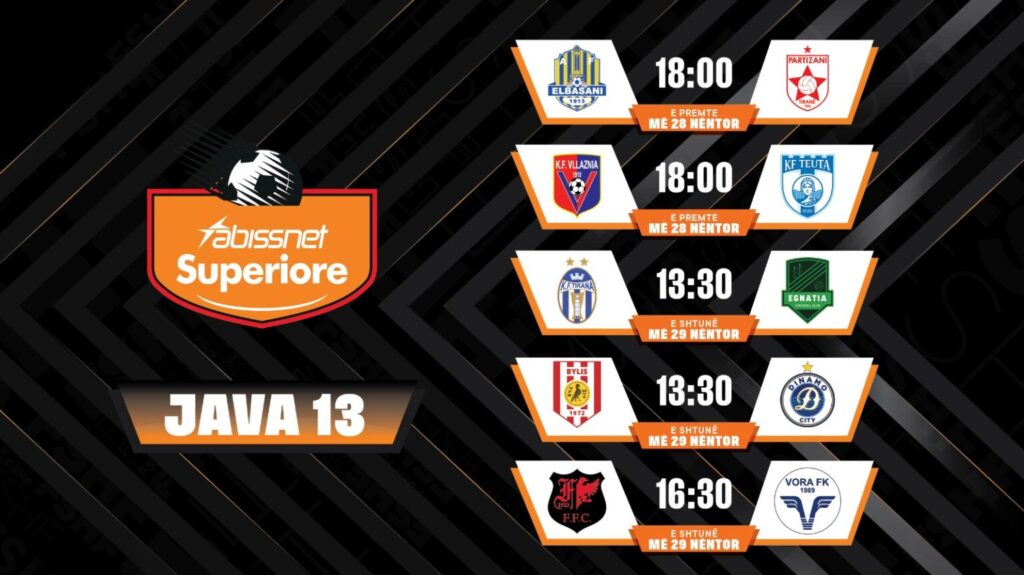 27 Nëntor 2025 10:46 Abissnet Superiore/ Java e 13-të sjell duele interesante, spikat Elbasani-Partizani