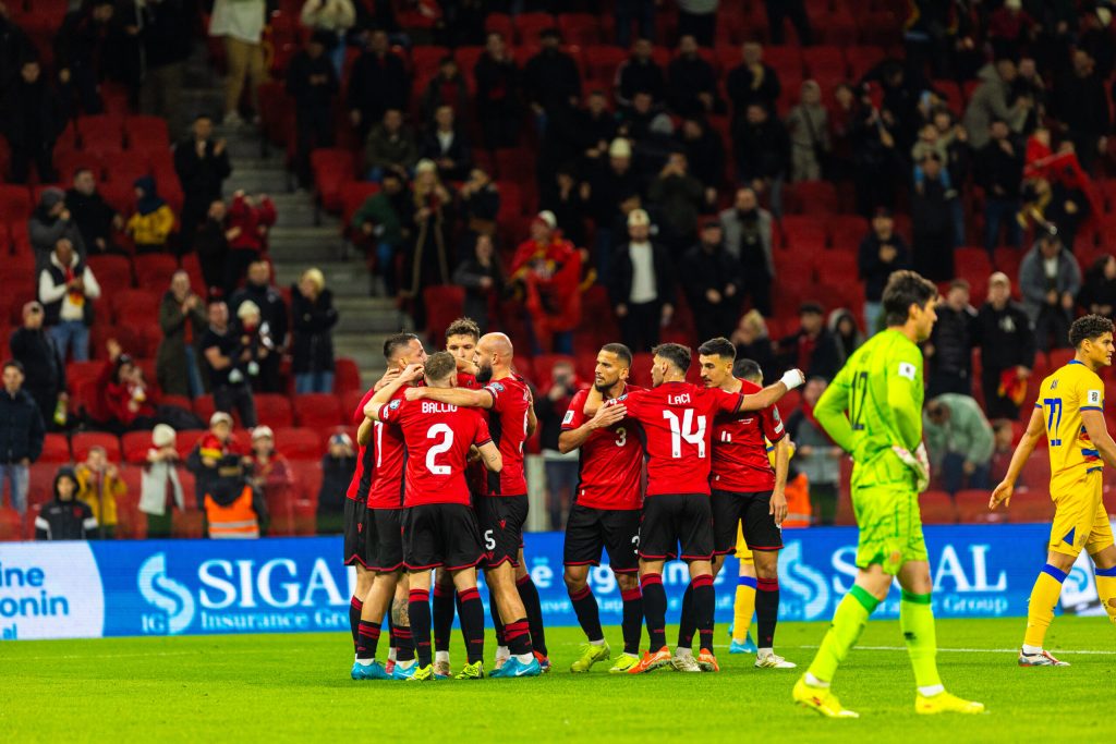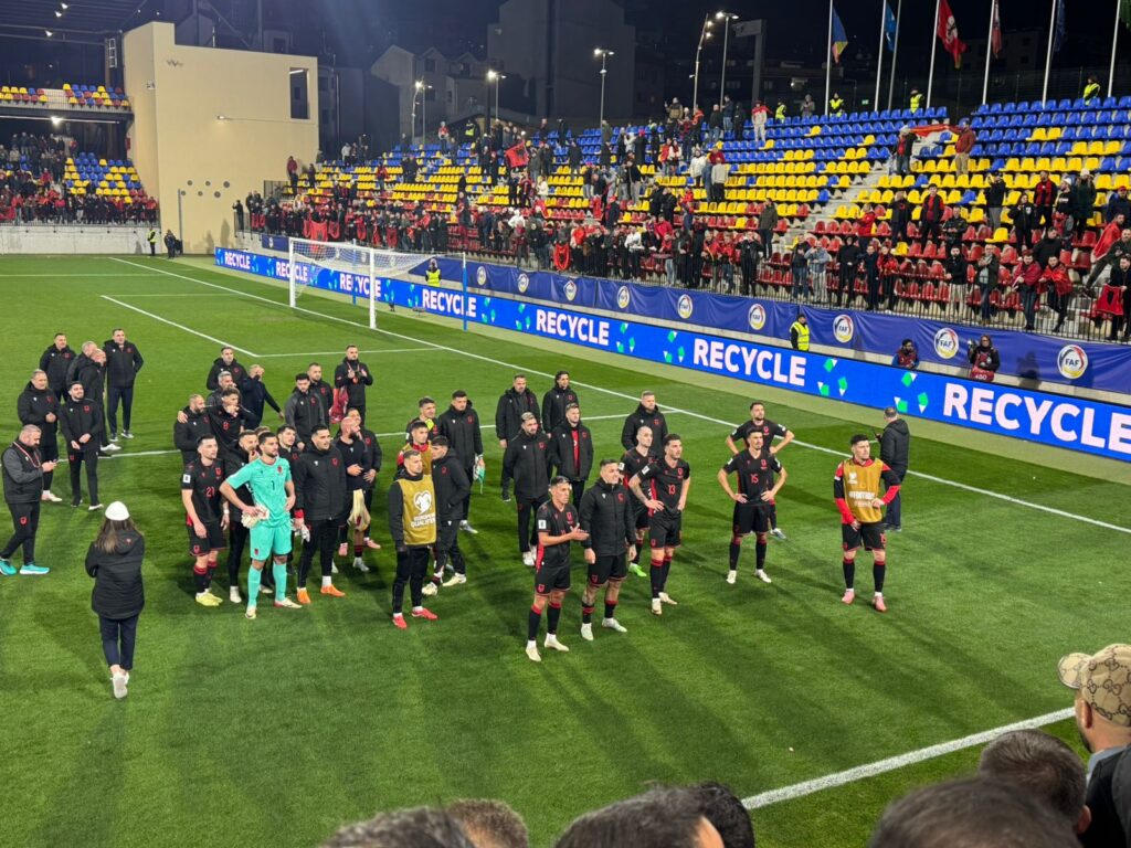 13 Nëntor 2025 23:03 Pamje ekskluzive/ Lojtarët e Kombëtares festojnë me tifozët suksesin historik...