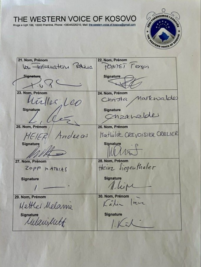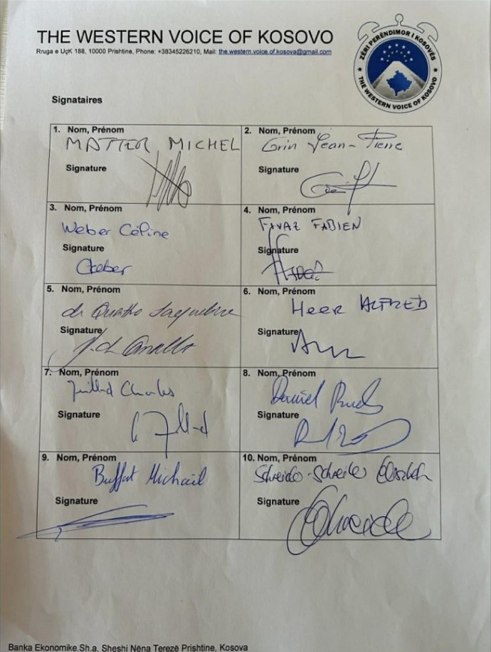 Deputetët nënshkrues të Rezolutës janë nga të gjitha partitë politike zvicerane.