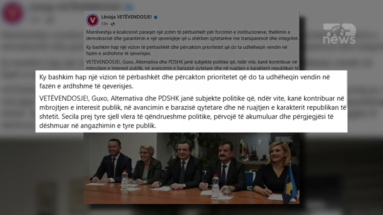 “Ky bashkim hap një vizion të përbashkët dhe përcakton prioritetet që do ta udhëheqin vendin në fazën e ardhshme të qeverisjes. Vetëvendosje, Guxo, Alternativa dhe PDSHK janë subjekte politike që, ndër vite, kanë kontribuar në mbrojtjen e interesit publik, në avancimin e barazisë qytetare dhe në ruajtjen e karakterit republikan të shtetit.